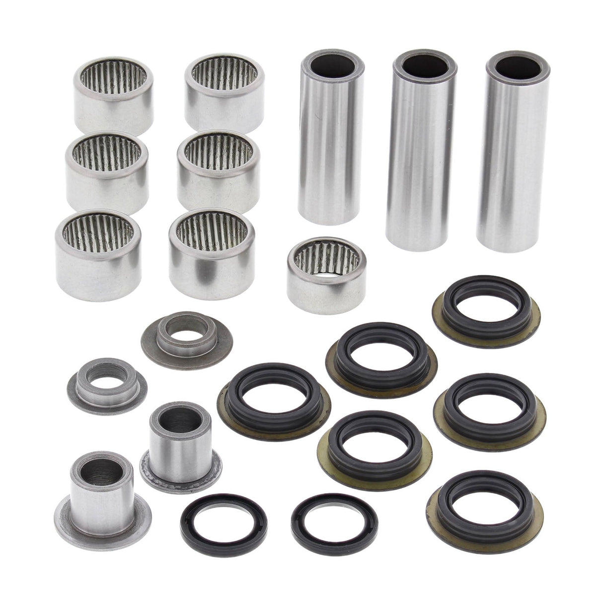 The most comprehensive line of Off-Road and ATV Swing arm Linkage kits available anywhere. One kit does it all! All of the bearings, seals, shafts*, bushings, thrust bearings (if required) in one all inclusive kit in order to do the job correctly and completely. All bearing shafts manufactured with 52100 bearing steel that is hardened and centerless ground for a precision fit and extended wear.