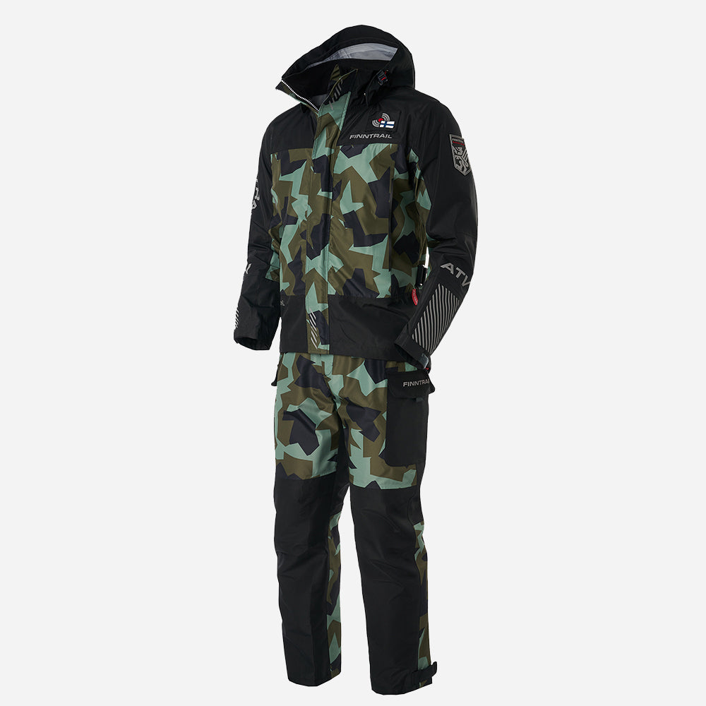 The all-weather THOR suit is designed for ATV/UTV riding and outdoor activities. It is made of four-layer fabric with a HARD-TEX membrane to ensure perfect protection against water, mud, and bad weather. The jacket is equipped with two inner and two outer pockets. Front two-way zipper comes with a storm flap which has magnetic fastening instead of Velcro for extra moisture- and mud-resistance. Tight-fitting outer and inner cuffs prevent water ingress. The jacket features removable hood with high fleece-lined collar and reflective elements to ensure safety in the dark. The pants have two spacious side slip pockets, articulated knee cut, elastic adjustable suspenders, and high back with additional insulation layer for warmth and comfort. All seams and zippers are securely taped.