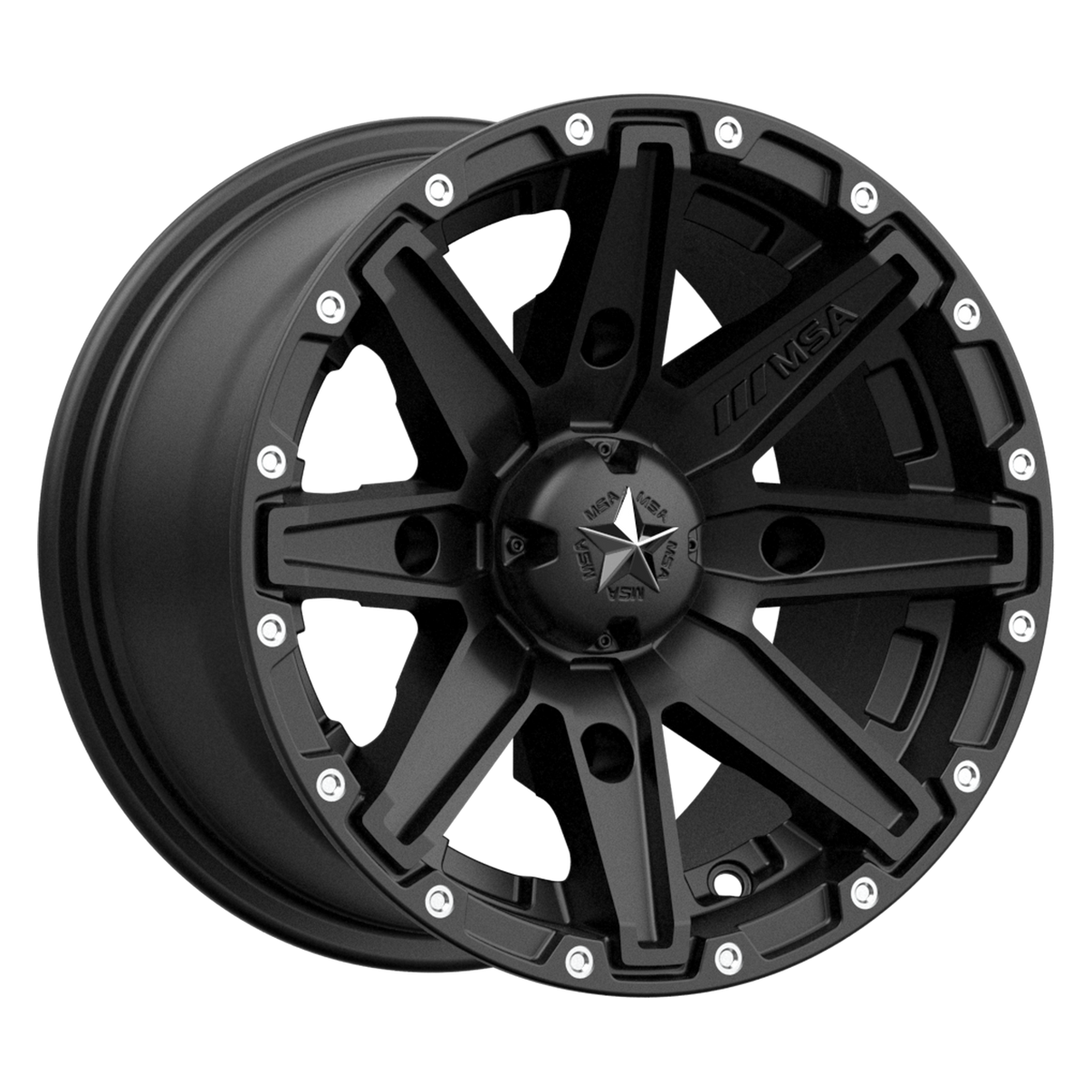 The M33 Clutch breaks the off-road styling mold with deep, three dimensional spoke design and lightweight engineering to truly enhance your ride performance. Finished in satin black automotive grade paint, the M33 Clutch has subtle, milled accents along the lip for just the right amount of raw aluminum highlights. Available in 12x7, 14x7, 15x7 and 16x7, with fitments for any UTV or ATV. Interchangeable center cap and star allow you to swap out accessories for custom colors and optional finishes. Backed by full lifetime structural warranty, the M33 Clutch is your best ally on any terrain, anywhere in the world. This is next level off-road performance.